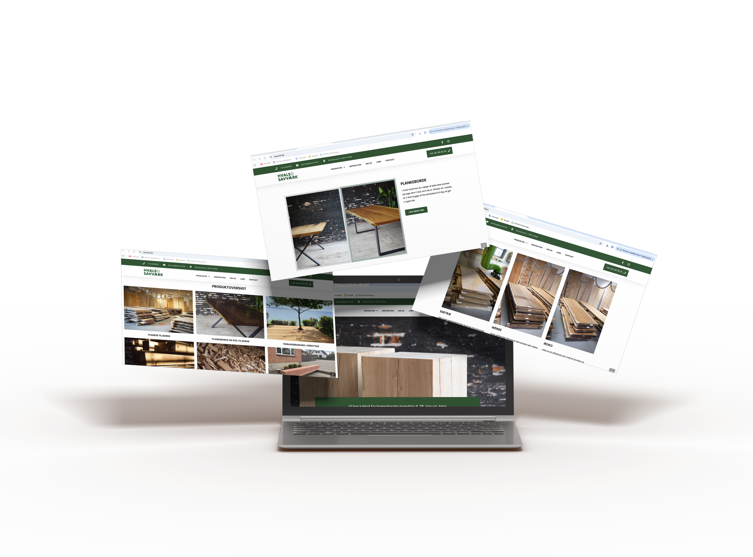 Hvalsø Savværk har altid haft en stærk lokal tilstedeværelse og loyale kunder. Udfordringen var, at meget af den kvalitet og faglighed, kunderne oplevede i butikken, ikke var synlig digitalt – og dermed heller ikke let at finde for nye kunder. professionelt visuelt indhold og sikre, at det blev set af de rigtige mennesker lokalt. Samtidig skulle kommunikationen fungere på tværs af sociale medier, hjemmeside, Google-søgninger og fysiske materialer som brochurer og flyers.